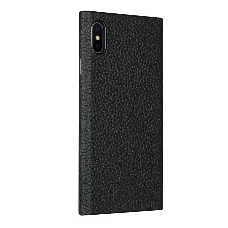 Deksel for iPhone X Svart Ekte Litchi Med Stropp