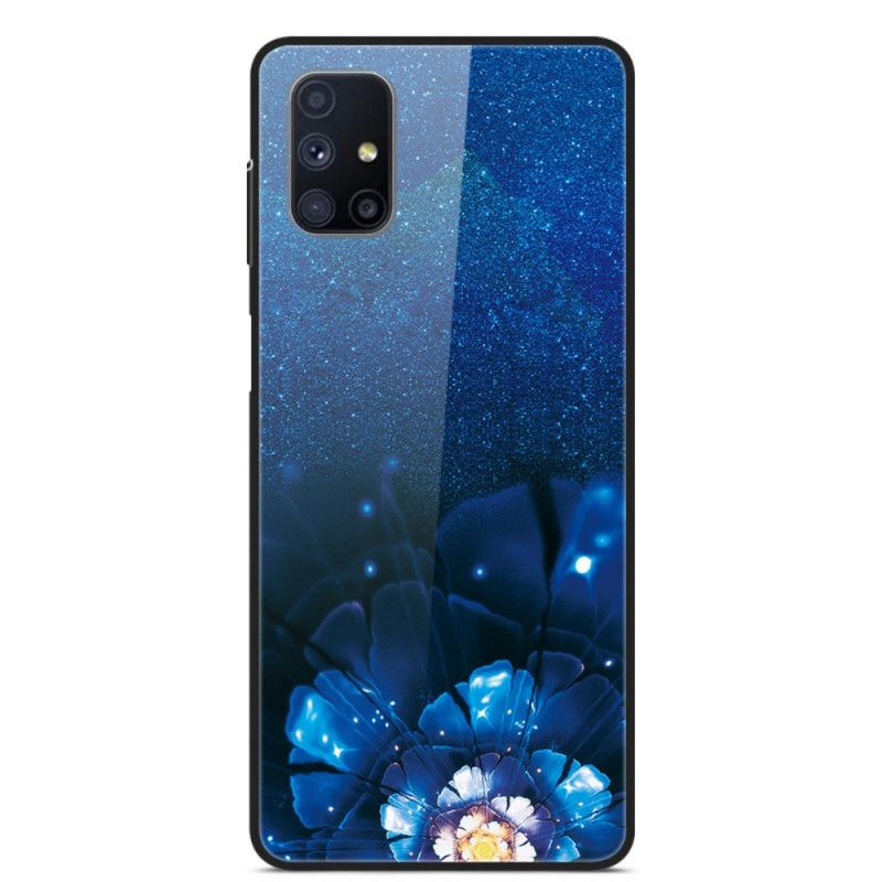 Deksel for Samsung Galaxy M51 Mørkeblå Fancy Blomster I Herdet Glass