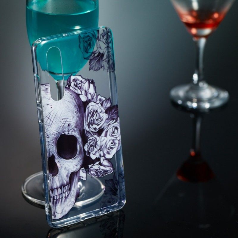 Deksel Huawei P30 Mobildeksel Gjennomsiktig. Blomstret Hodeskalle