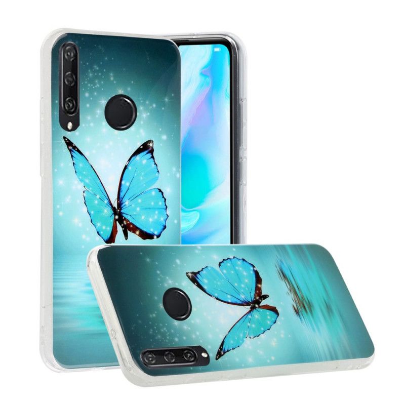 Deksel Huawei Y6p Mobildeksel Fluorescerende Blå Sommerfugl