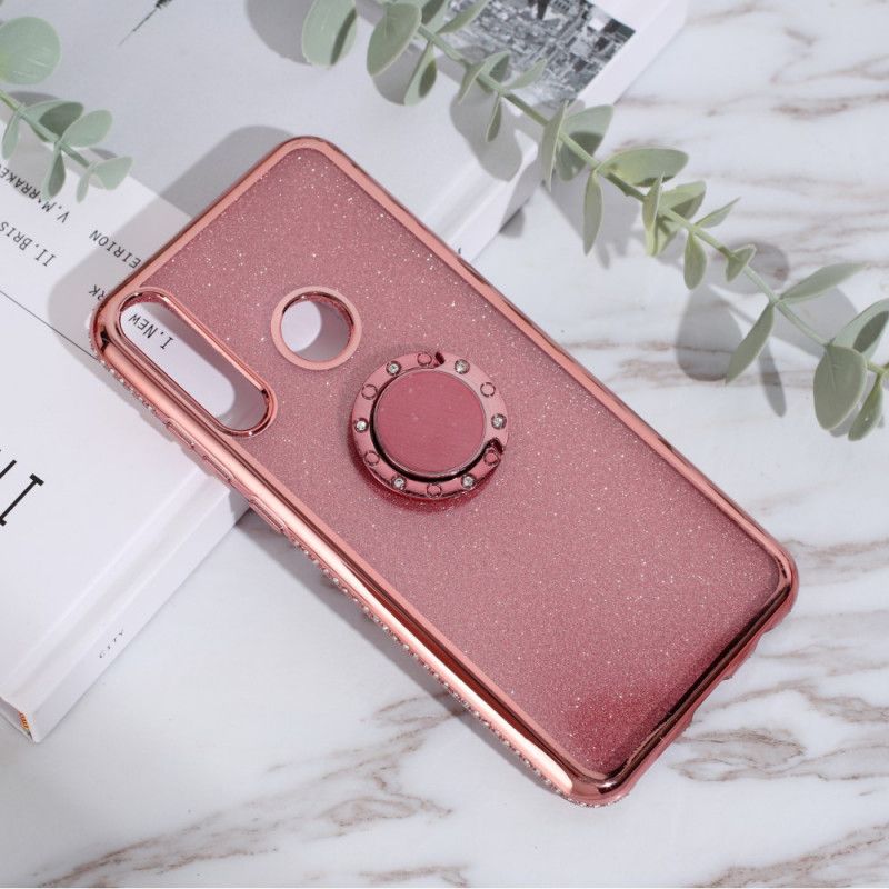 Glitter og Diamond Ring-Supprt dekselet sikrer Huawei Y6p på en fin og smart måte.
