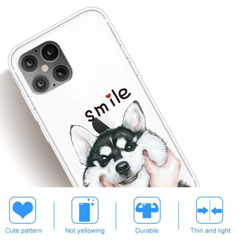 Dekselet Smile Dog, gjennomsiktig design, sikrer iPhone 12 Mini samtidig som den gir et flott utseende.