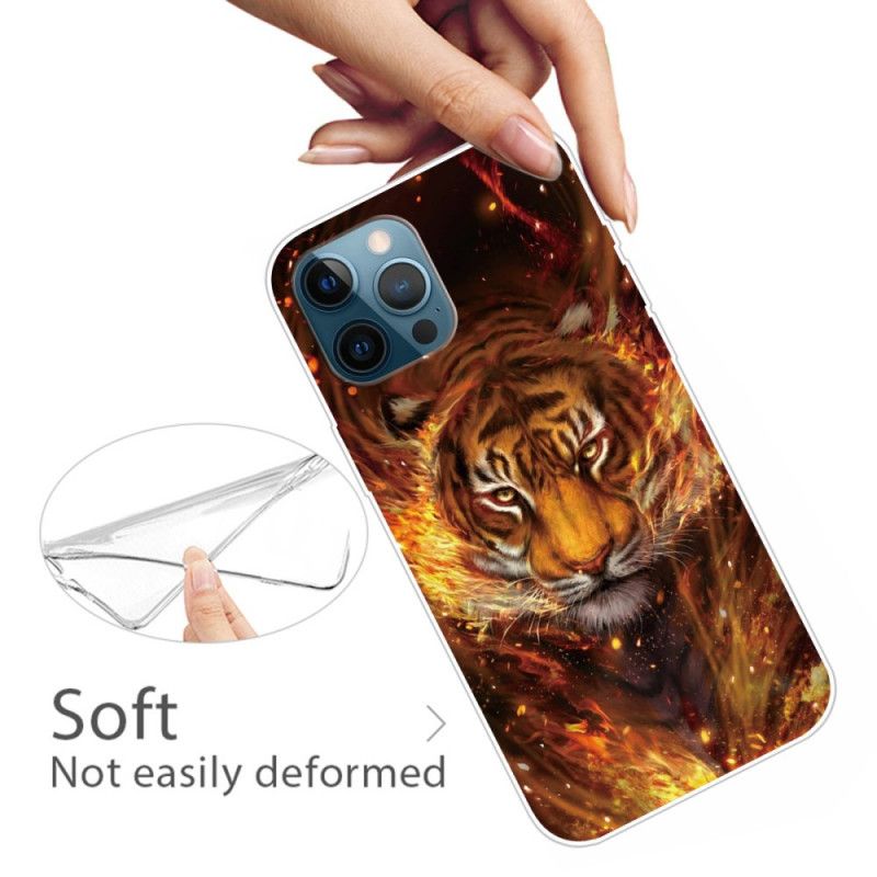 Deksel iPhone 12 / 12 Pro Svart Mobildeksel Fleksibel Tiger