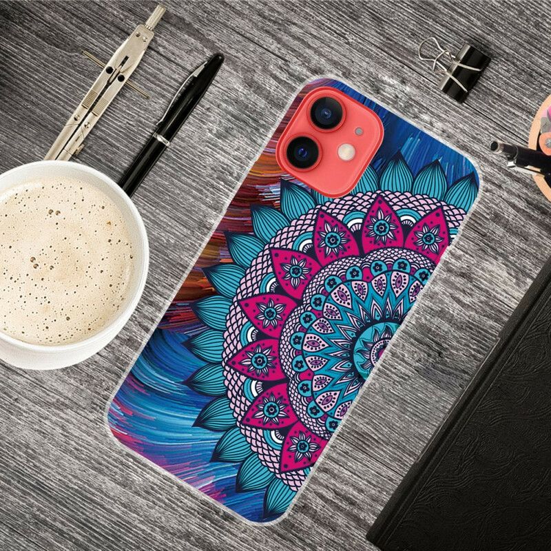 Det fargerike Mandala-dekselet, i tynn og lett gjennomsiktig silikon, beskytter iPhone 13 Mini perfekt.