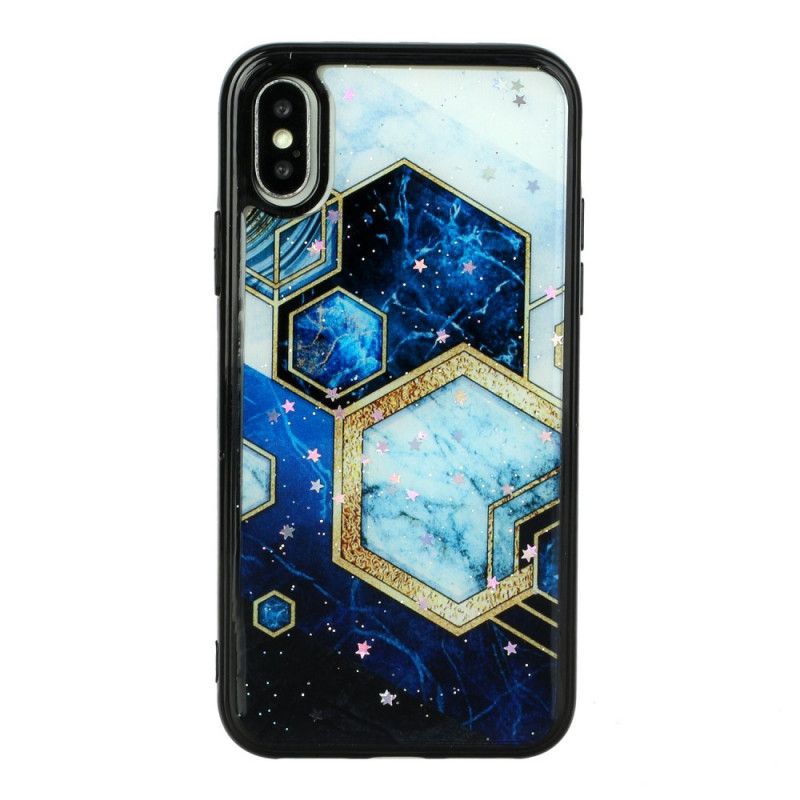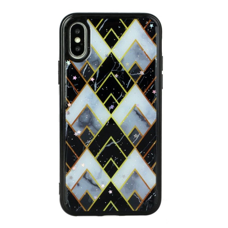 Deksel iPhone X Svart Silikon Og Epoksy Marmor Stil