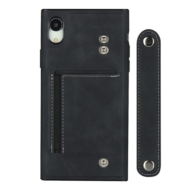 Deksel iPhone XR Svart Kortholder Og Stropp