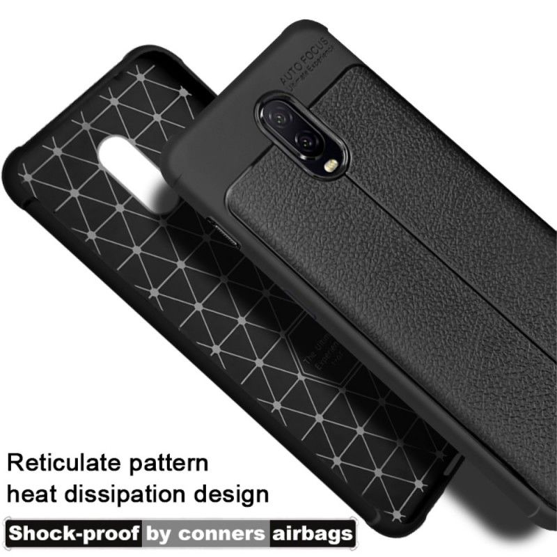 Deksel OnePlus 6T Svart Imak Imiterte Skinnsømmer