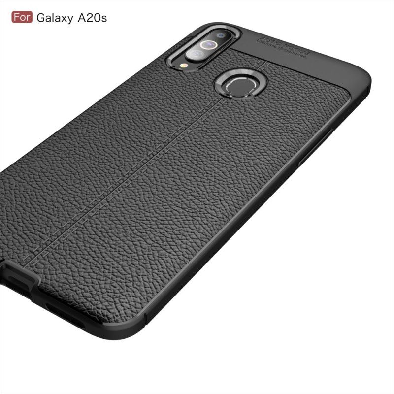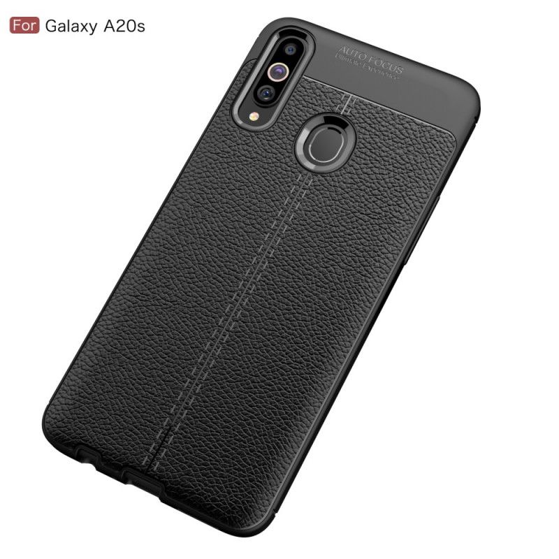Deksel Samsung Galaxy A20s Svart Dobbeltlinjet Litchi-Effekt