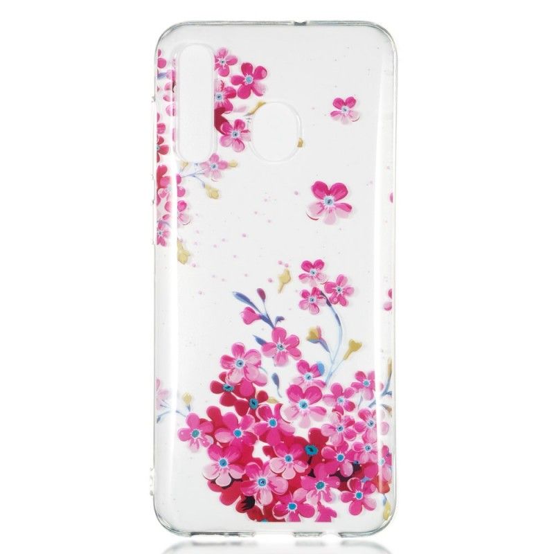 Etui med subtile rosa blomster for å beskytte Samsung Glaxy A50 samtidig som det opprettholder det opprinnelige utseendet.