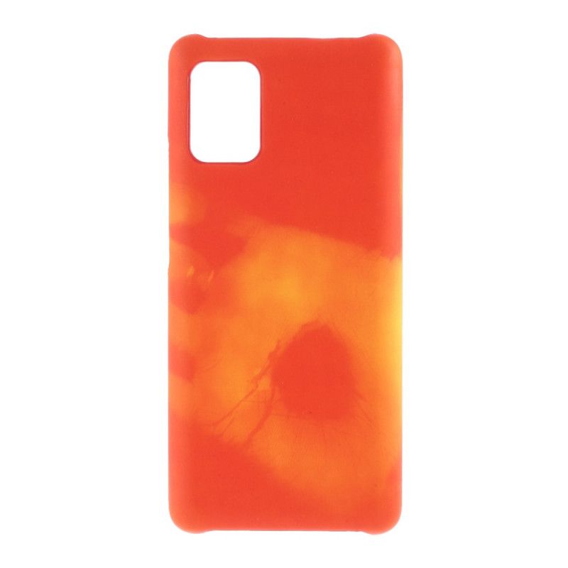 Contact Color-dekselet, designet i fuskeskinn og plast, beskytter Galaxy A51 5G mens du skifter farge i kontakt med hånden .