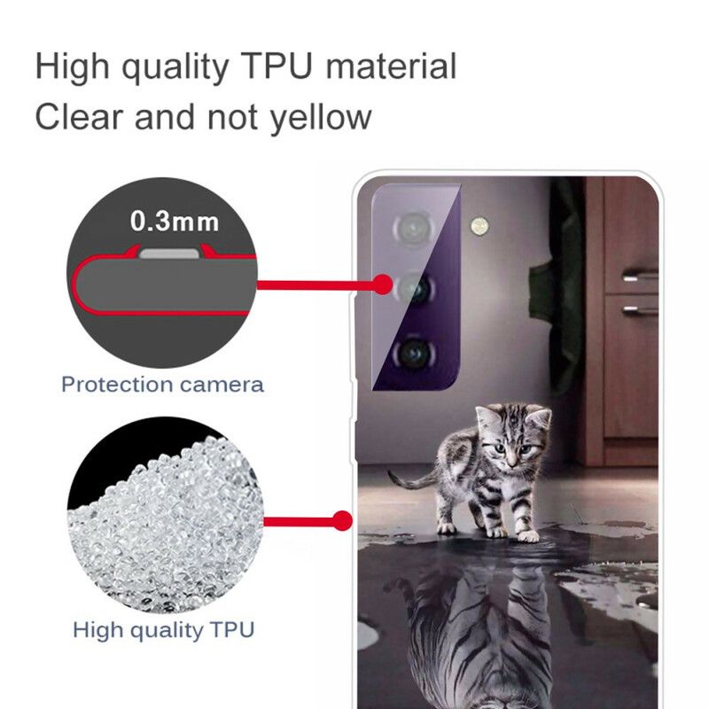 Den gir enkel tilgang til funksjonene og portene til S21 FE!- Fleksibelt silikondeksel / tigerdesign
