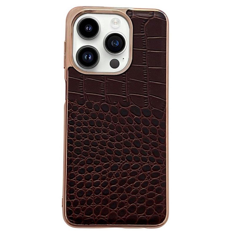 Et Ekte Skinndeksel, Med En Tekstur Av Krokodilleskinn, For Å Sikre Din Iphone 14 Pro Max På En Luksuriøs Måte.