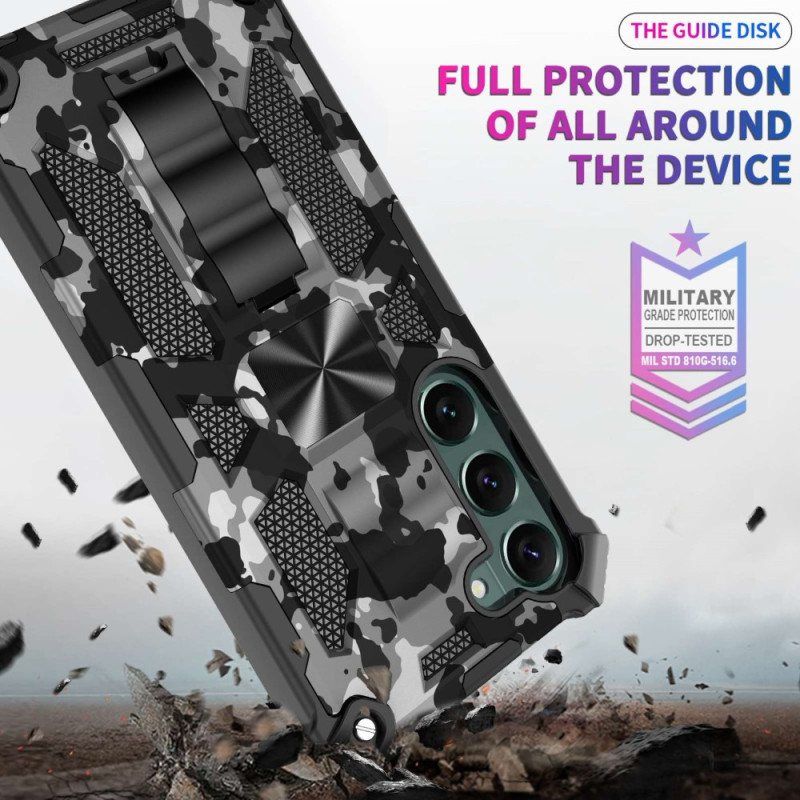 Dette Militære Kamuflasjedesigndekselet, Som Kommer Med Et Avtakbart Stativ, Vil Perfekt Beskytte Din Samsung Galaxy S23 5G.