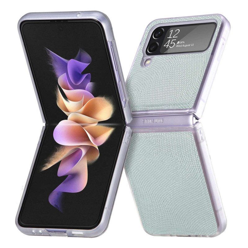 Etuiet Er Laget Av Imitert Skinn I Slangeskinn Festet Til Et Ultrabestandig Gjennomsiktig Silikondeksel For Å Beskytte Din Samsung Galaxy Z Flip 4.