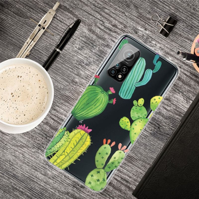 The Cactus Aquarelle-deksel, laget av fleksibel silikon med gjennomsiktig design, er perfekt for å beskytte din Xiaomi Mi 10T / 10T Pro.