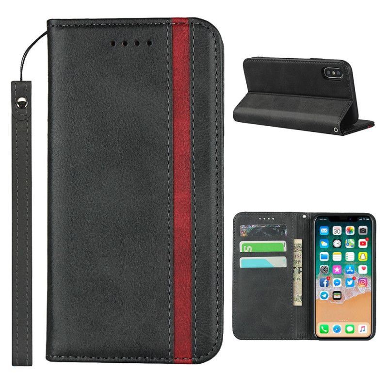 Folio Deksel for iPhone X Svart Tofarget Skinneffekt Med Stropp