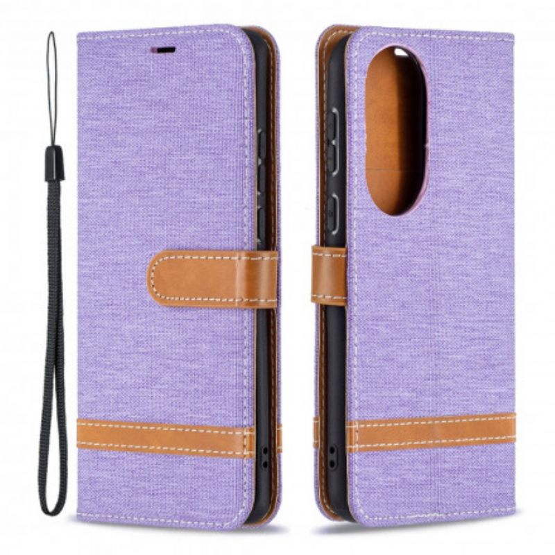 Folio Deksel Huawei P50 Stoff- Og Skinneffekt Med Stropp Beskyttelse Deksel