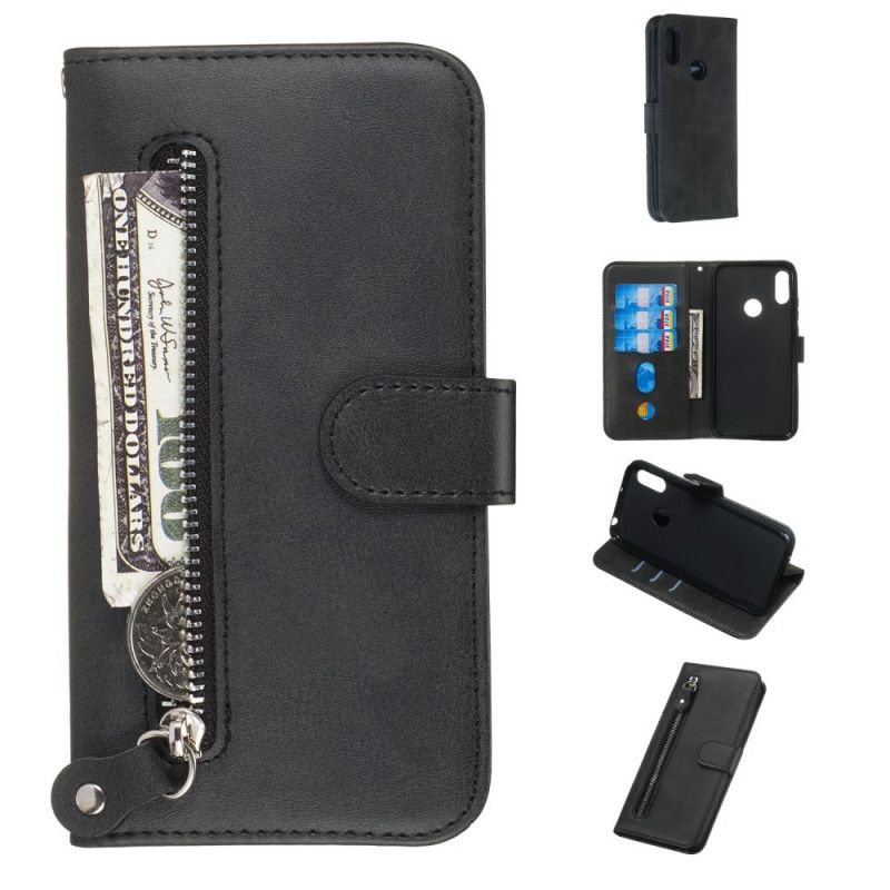 Et vakkert deksel i imitert lær, designet for Honor 8A / Huawei Y6 2019 med en nyttig lommebok med glidelås.