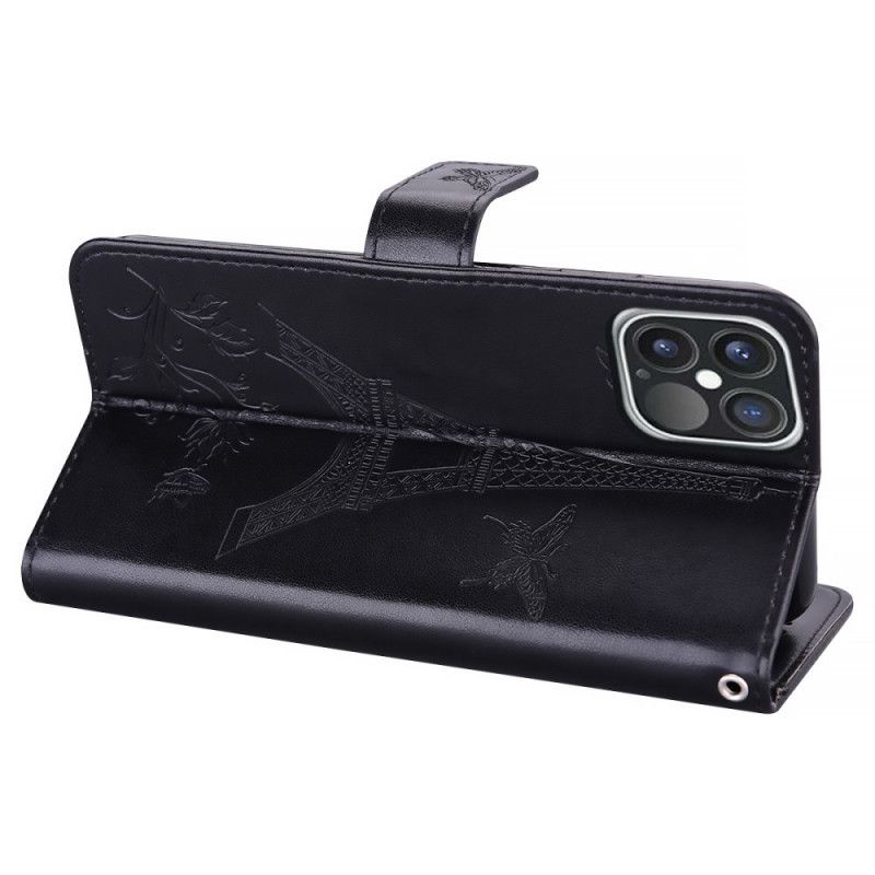 Folio Deksel iPhone 12 / 12 Pro Svart Eiffeltårnet Skinnstil