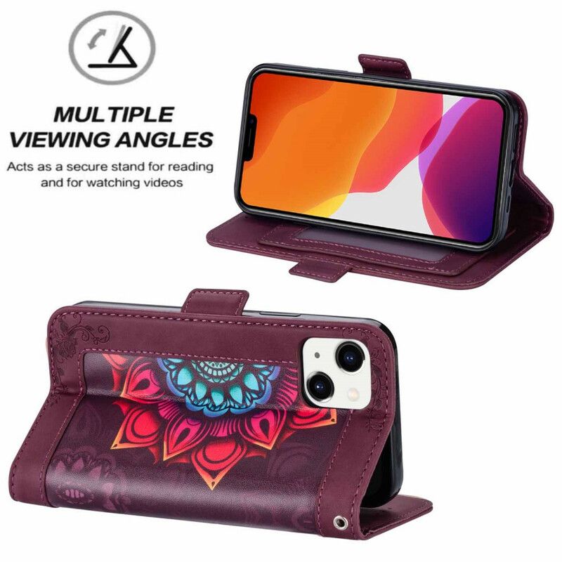 Beskytt din iPhone 13 med dette Mandala Decoration-dekselet med stropp som også fungerer som en lommebok.
