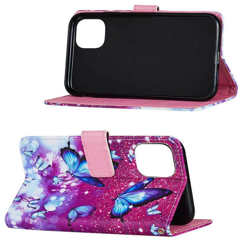 Folio Deksel iPhone 13 Teksturerte Sommerfugler I Kunstskinn