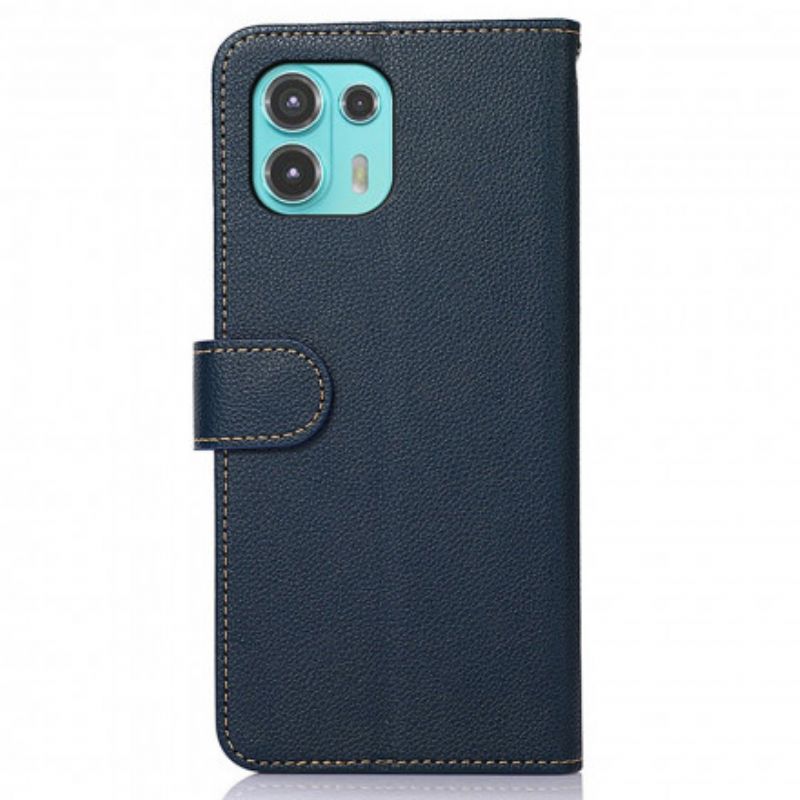 Motorola Edge 20 Lite og kredittkortene dine er helt trygge med dette Litchi-dekselet fra KHAZNEH som drar nytte av RFID-teknologi.