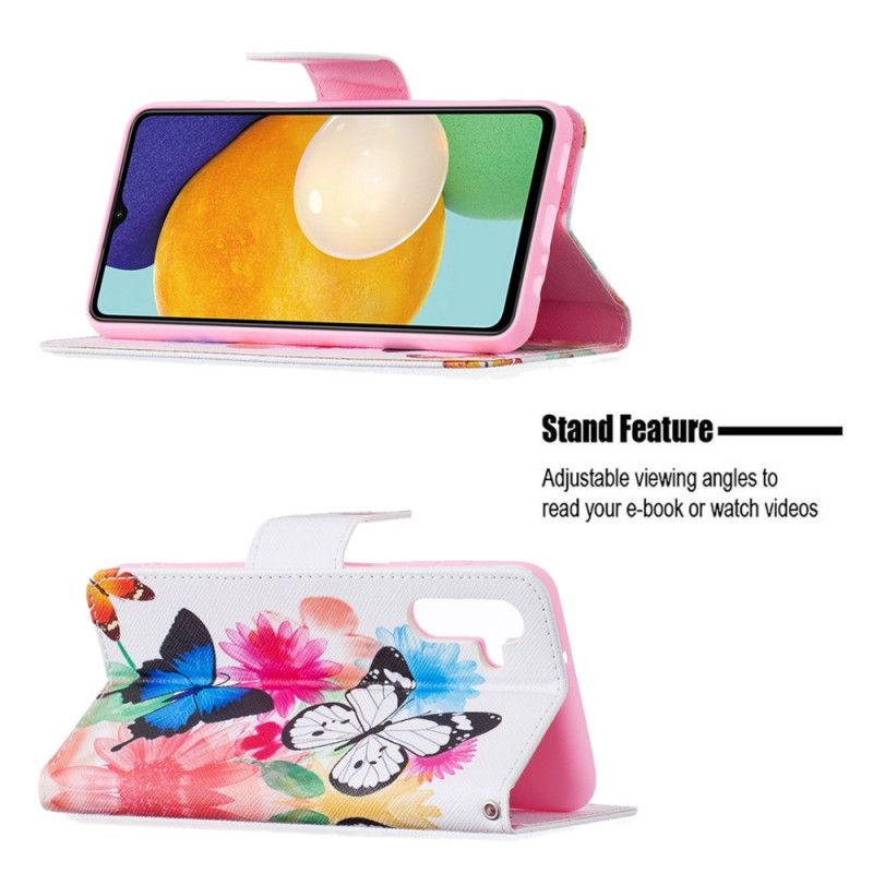 Samsung Galaxy A13 5G er vakkert beskyttet med dette multifunksjonelle Painted Butterflies and Flowers-dekselet.