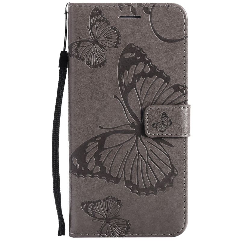 Folio Deksel Samsung Galaxy A52 4G / A52 5G Grå Kjempestore Sommerfugler Anti-fall