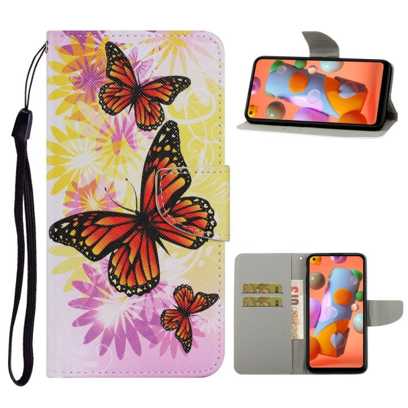 Folio Deksel Samsung Galaxy M11 Gul Sommerfugler Og Sommerblomster