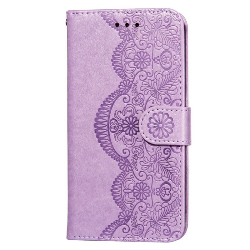 Samsung Galaxy S21 Plus 5G er fullstendig beskyttet med dette blomsterbroderi imitert lærdeksel som også fungerer som lommebok.