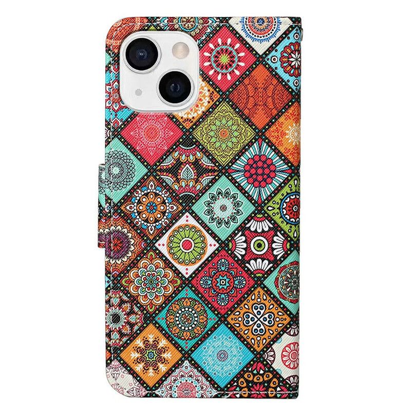 Folio Deksel Til iPhone 13 Patchwork-mandalaer Med Snor
