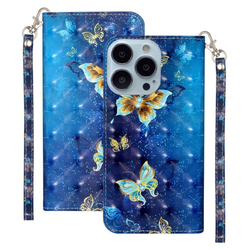 Folio Deksel Til iPhone 15 Pro Max Med Kjede 3d-sommerfugler Med Snor