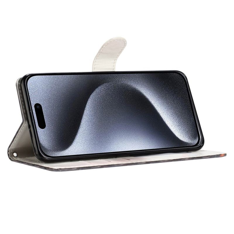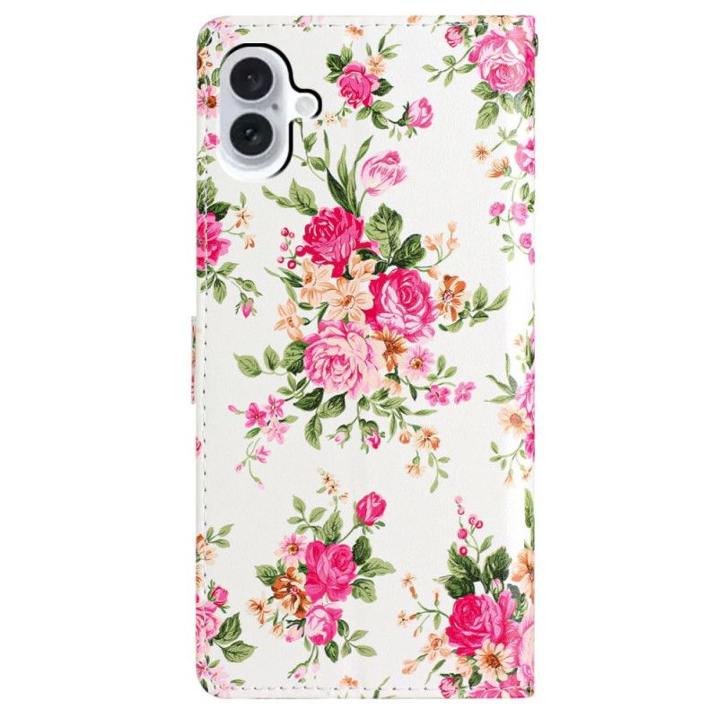 Folio Deksel Til iPhone 16 Plus Røde Blomster Med Stropp