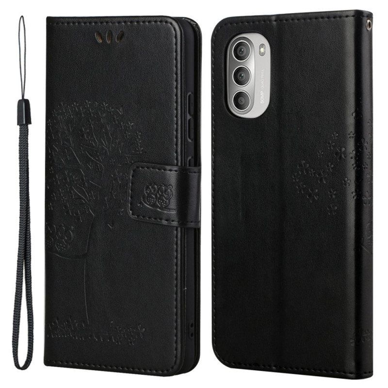 Leather Effect Tree And Owls-Dekselet, Med Magnetisk Klaff, Beskytter Din Moto G51 5G.