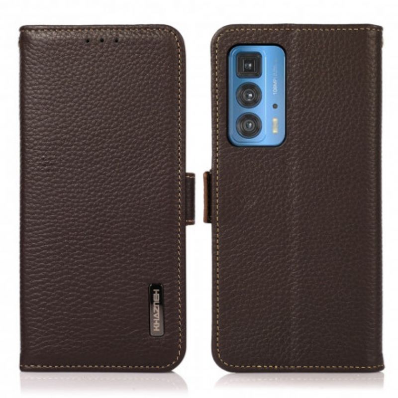 Folio Deksel Til Motorola Edge 20 Pro Ekte Skinn Litchi Khazneh Rfid
