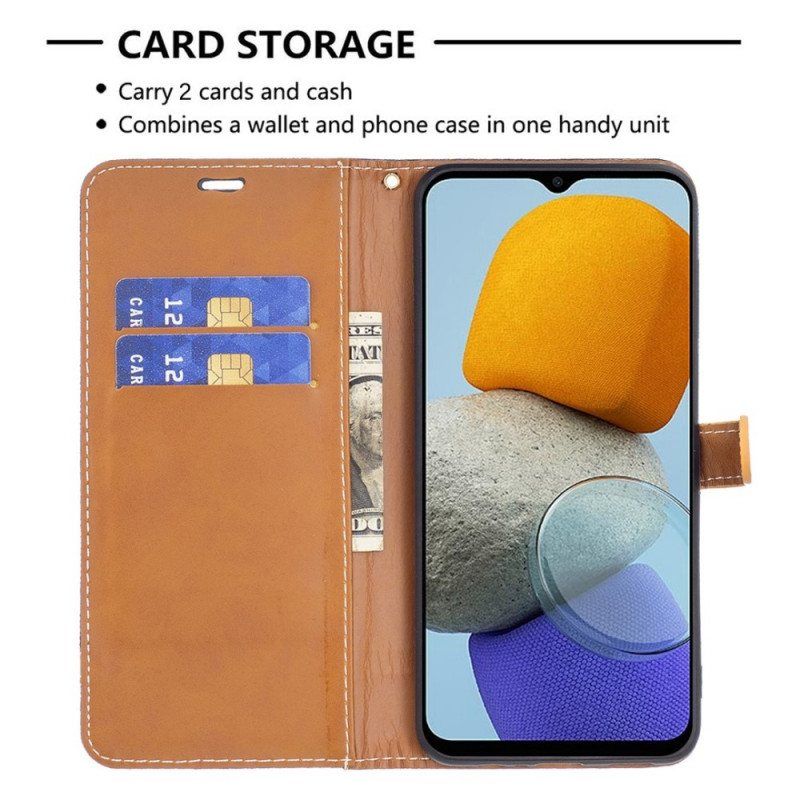 Et Deksel I Imitert Skinn Dekket Med Stoff, Som Kommer Med En Stropp, For Å Elegant Beskytte Hele Din Samsung Galaxy M53 5G.