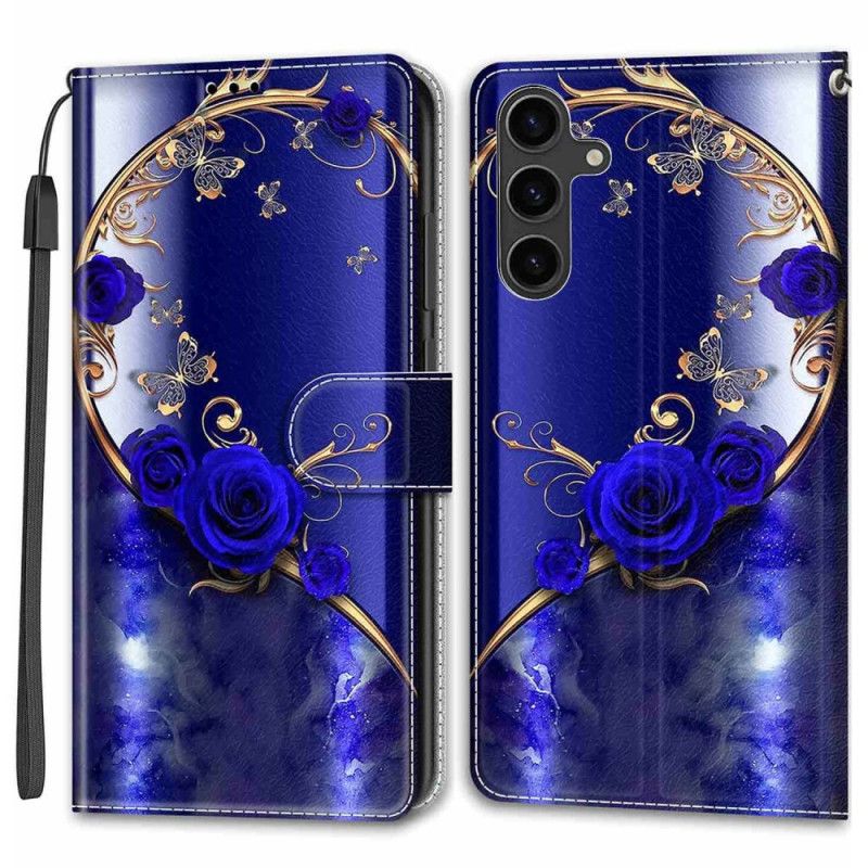 Folio Deksel Til Samsung Galaxy S24 5g Blå Roser Og Gullsommerfugler Med Stropp