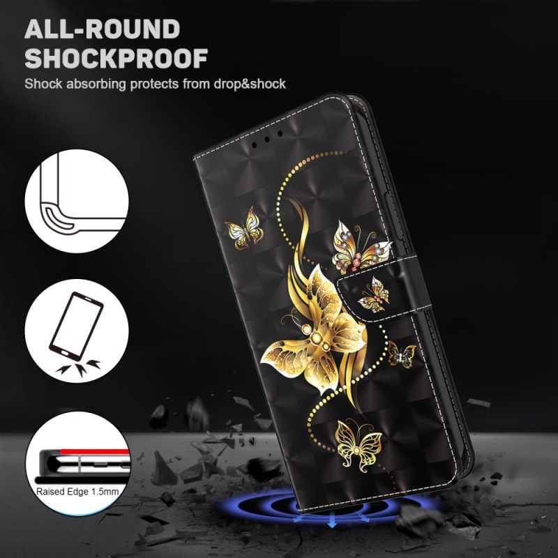 Folio Deksel Til Xiaomi Redmi Note 13 Pro Plus 5g Gylne Sommerfugler Med Snor