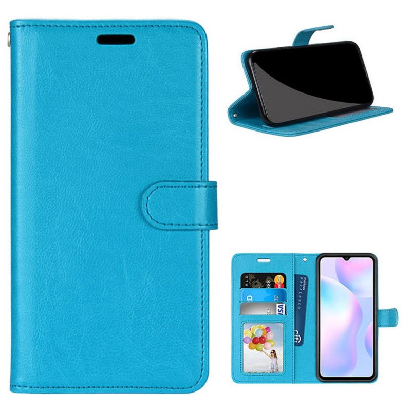 Folio Deksel Xiaomi Redmi 9A Svart Skinnende Fuskeskinn