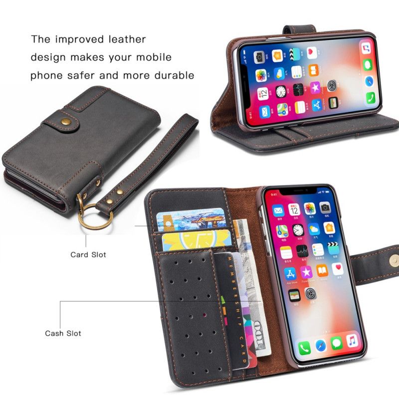 Lærdeksel Folio Deksel iPhone 11 Svart Mobildeksel Retro Stil Delt Skinn
