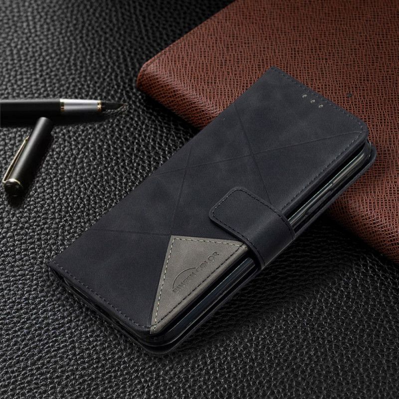 Lærdeksel Folio Deksel iPhone XR Svart Mobildeksel Binfen Fargetrekanter
