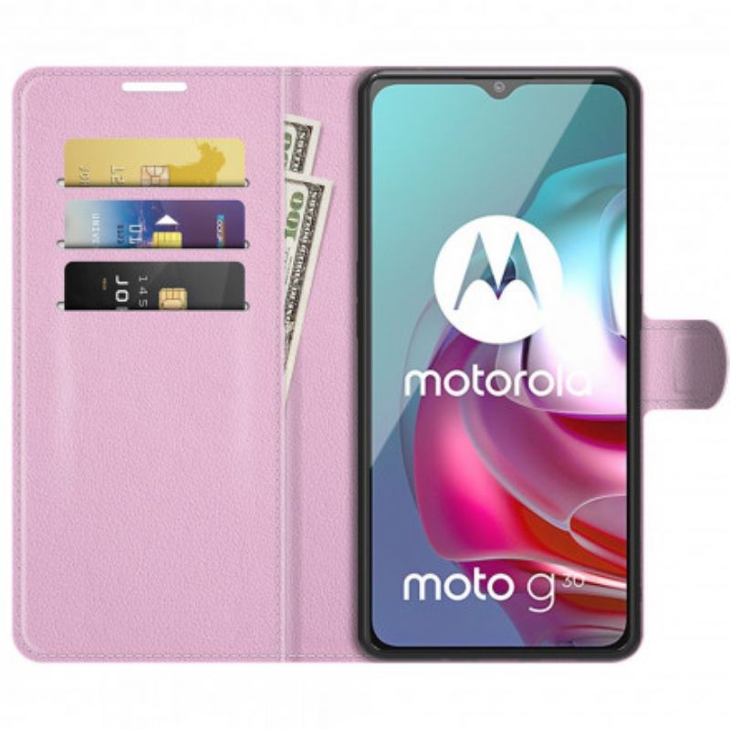 Lærdeksel Folio Deksel Moto G30 / G10 Klassisk Litchi-effekt
