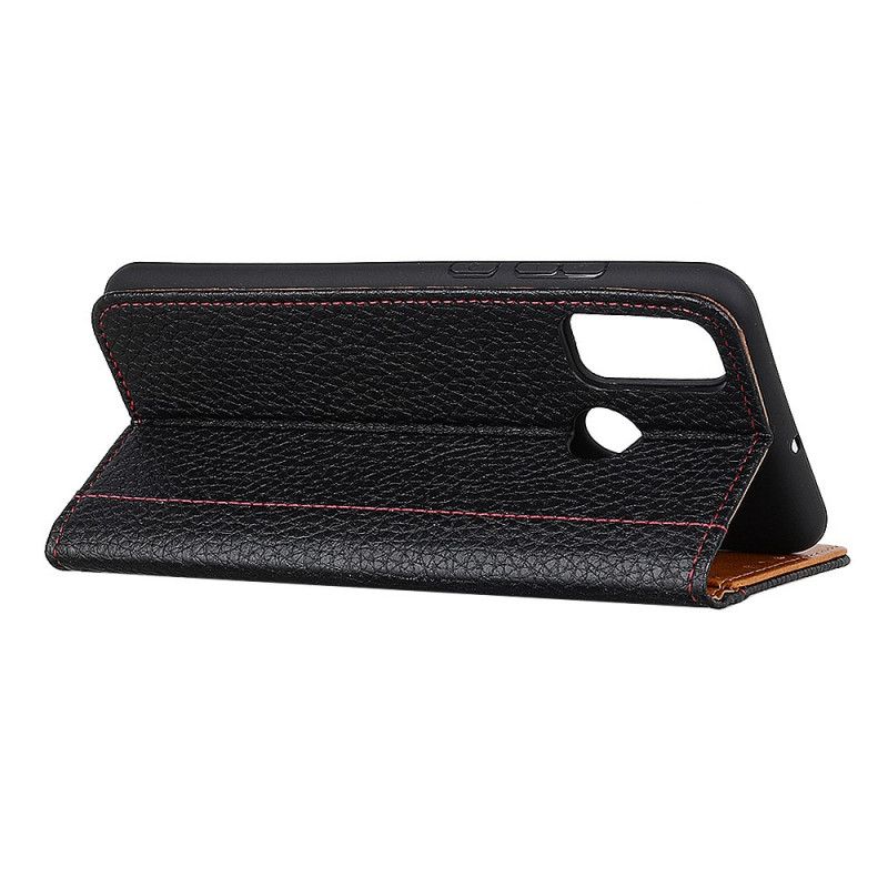 Lærdeksel Folio Deksel OnePlus Nord N100 Svart Sydd Litchi-Effekt