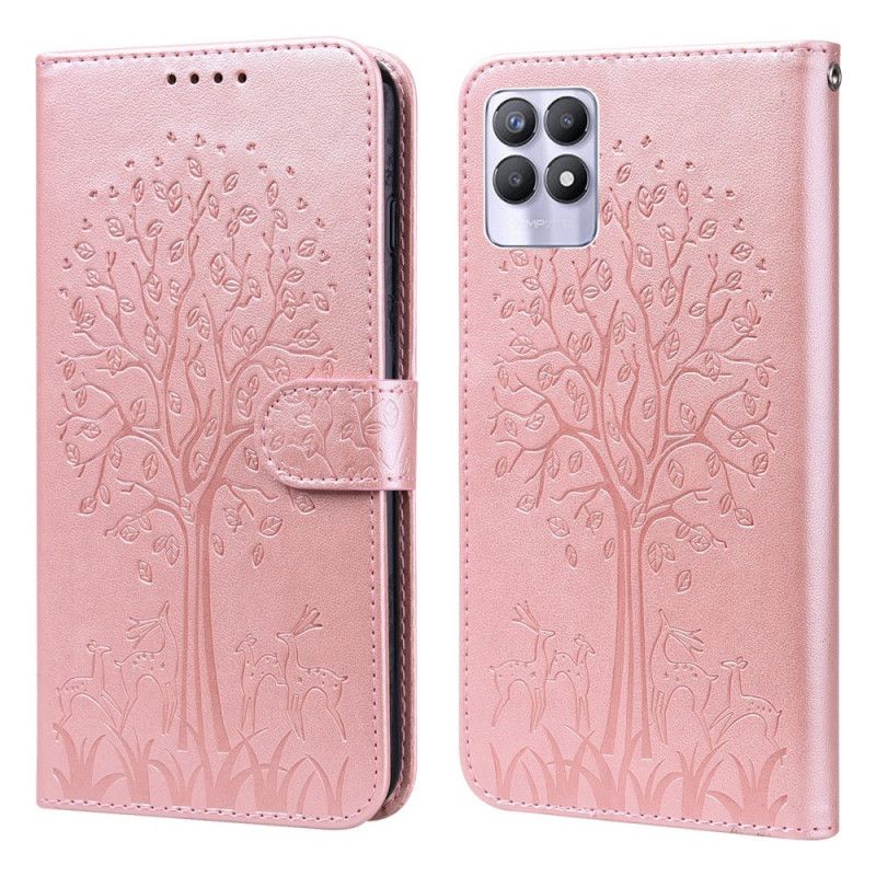 Lærdeksel Folio Deksel Realme 8i Mobildeksel Tre Og Hjort