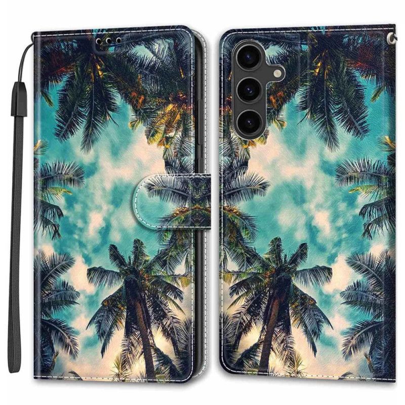 Lærdeksel Folio Deksel Samsung Galaxy S24 5g Mobildeksel Kokosnøttmønster Med Stropp