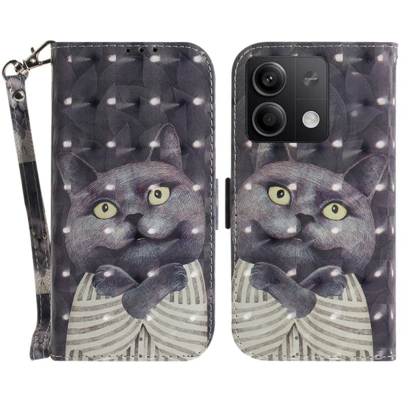 Lærdeksel Folio Deksel Xiaomi Redmi Note 13 5g Mobildeksel Grafisk Katt Med Snor