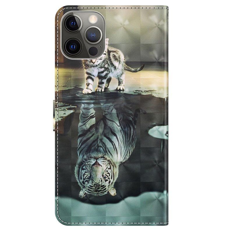 Lærdeksel Til iPhone 15 Pro Max Med Kjede 3d Kitten Dream Med Stropp