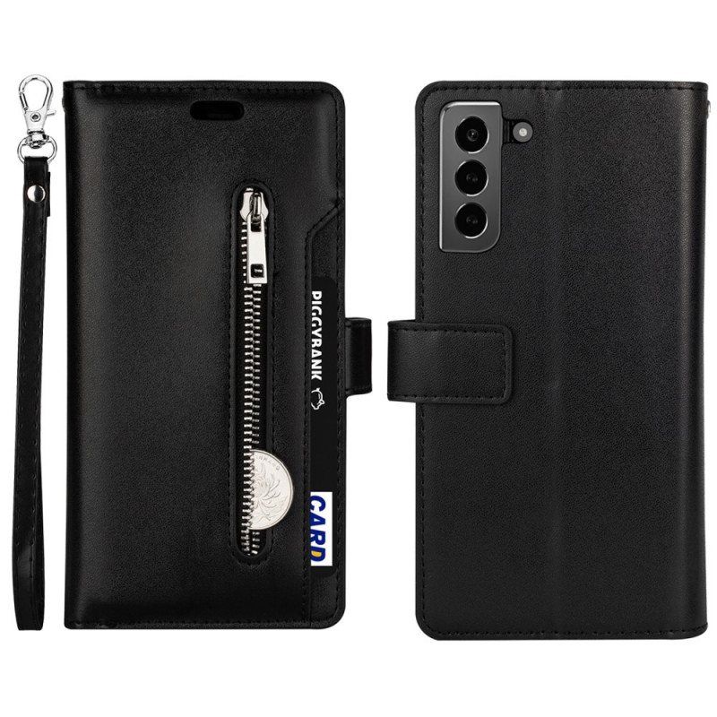 Et Vakkert Deksel, I Imitert Skinn, Designet For Samsung Galaxy S22 5G, Med En Lommebok Med Glidelås Og En Stropp.