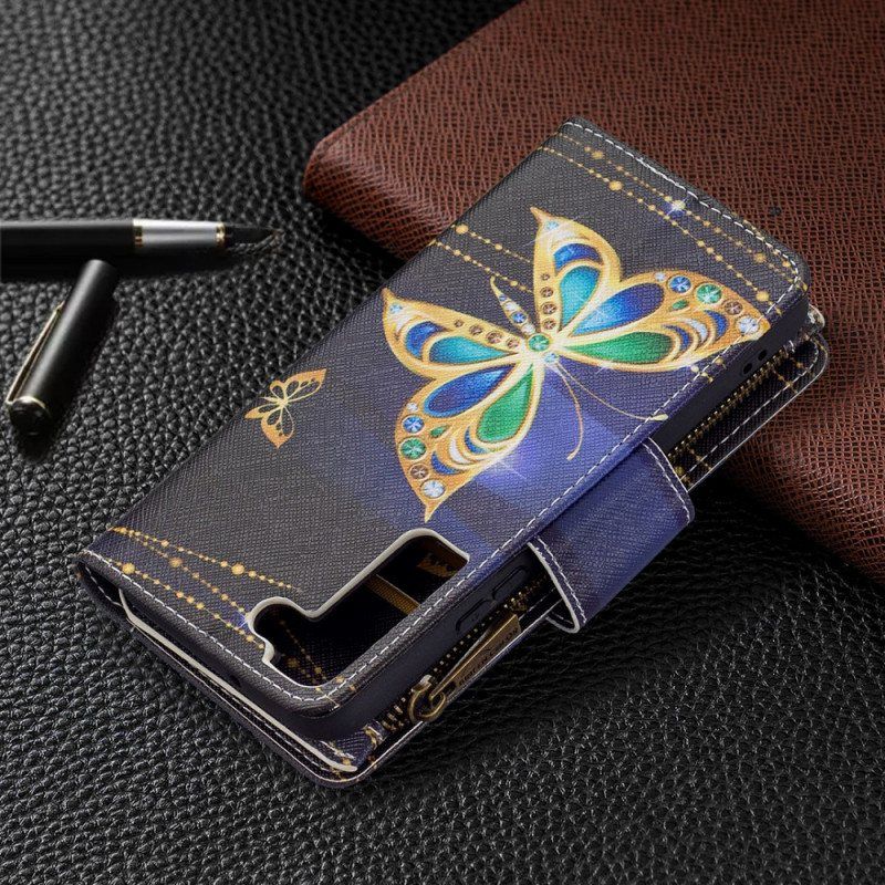 Lærdeksel Til Samsung Galaxy S22 5G Sommerfugllomme Med Glidelås